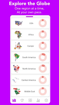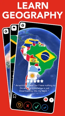 You'll quickly be able to identify flags, locate countries on the map, memorize capitals, and learn interesting statistics such as population, GDP, and size of every country around the world. It’s up to you to decide if you want to memorize precise numbers or just an order of magnitude or a ranking. Our app covers all 7 continents and every country around the world. But you can also choose to focus on a specific country and memorize all 50 USA states.