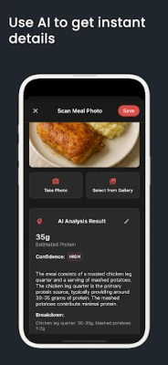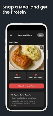 • AI-Powered Insights – Snap a photo and let the app estimate the protein content for you. Perfect for eating out or tracking on the go.