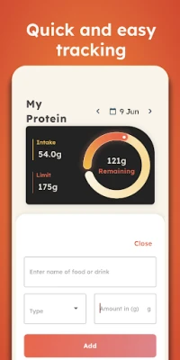 Quick and Easy Tracking: Log your protein intake in just a few taps.