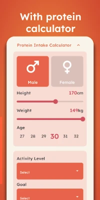 Customizable Protein Goals: Set your daily protein targets or use our built-in protein calculator to determine the perfect amount of protien based on your protein intake goals.