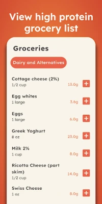 Protein food list: Our app includes a protein foods database and a high protein food list to make your protein meal planning and protein foods shopping effortless.